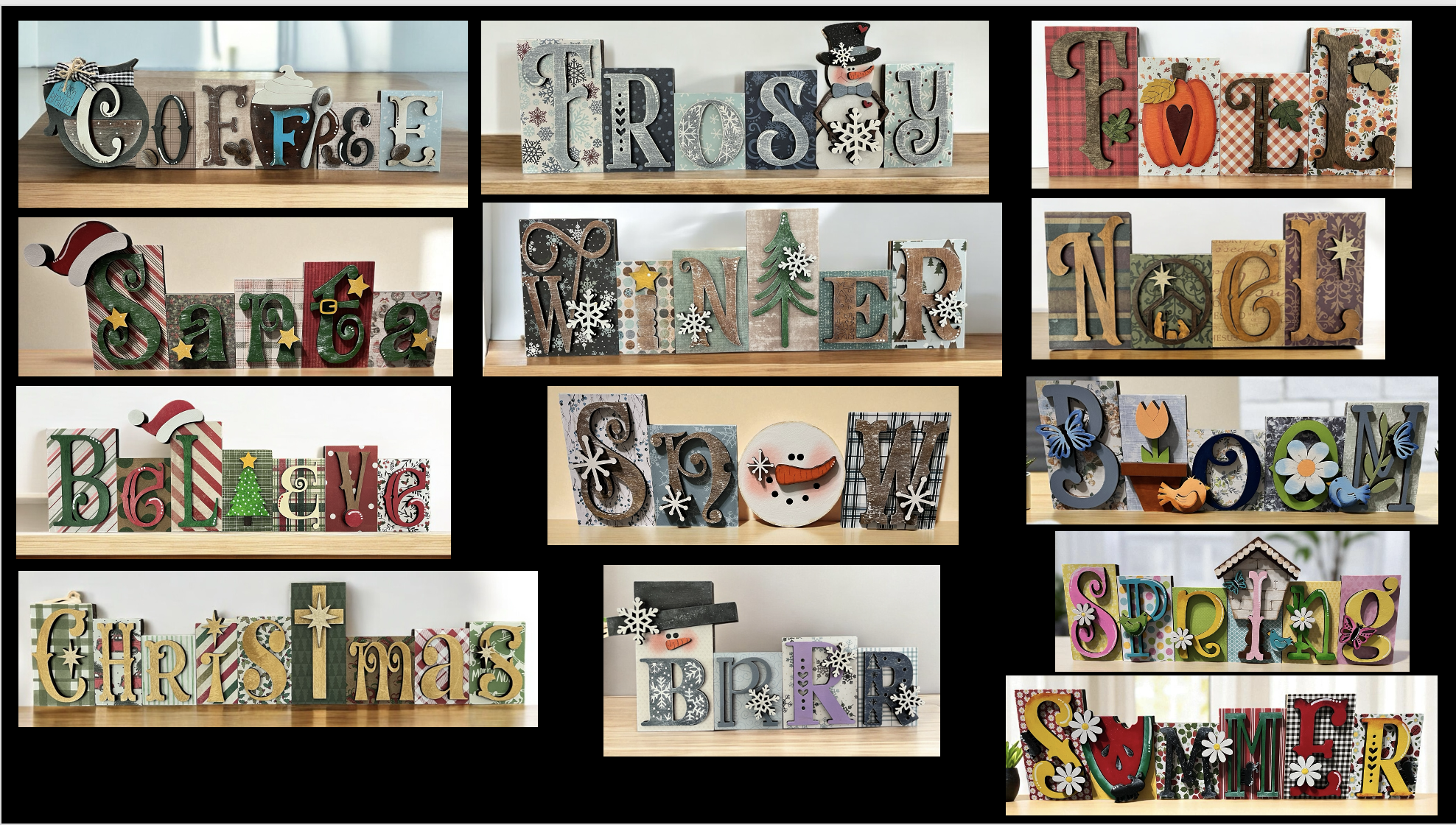 Take a Vintage Holiday Journey with our Create a cute word art shelf sitter to display in your home or gift to a special friend or secret sister! Choose from several different designs - seasonal and holiday choices. All word art shelf sitters are painted - but you'll be surprised at how easy and quick they are to paint!