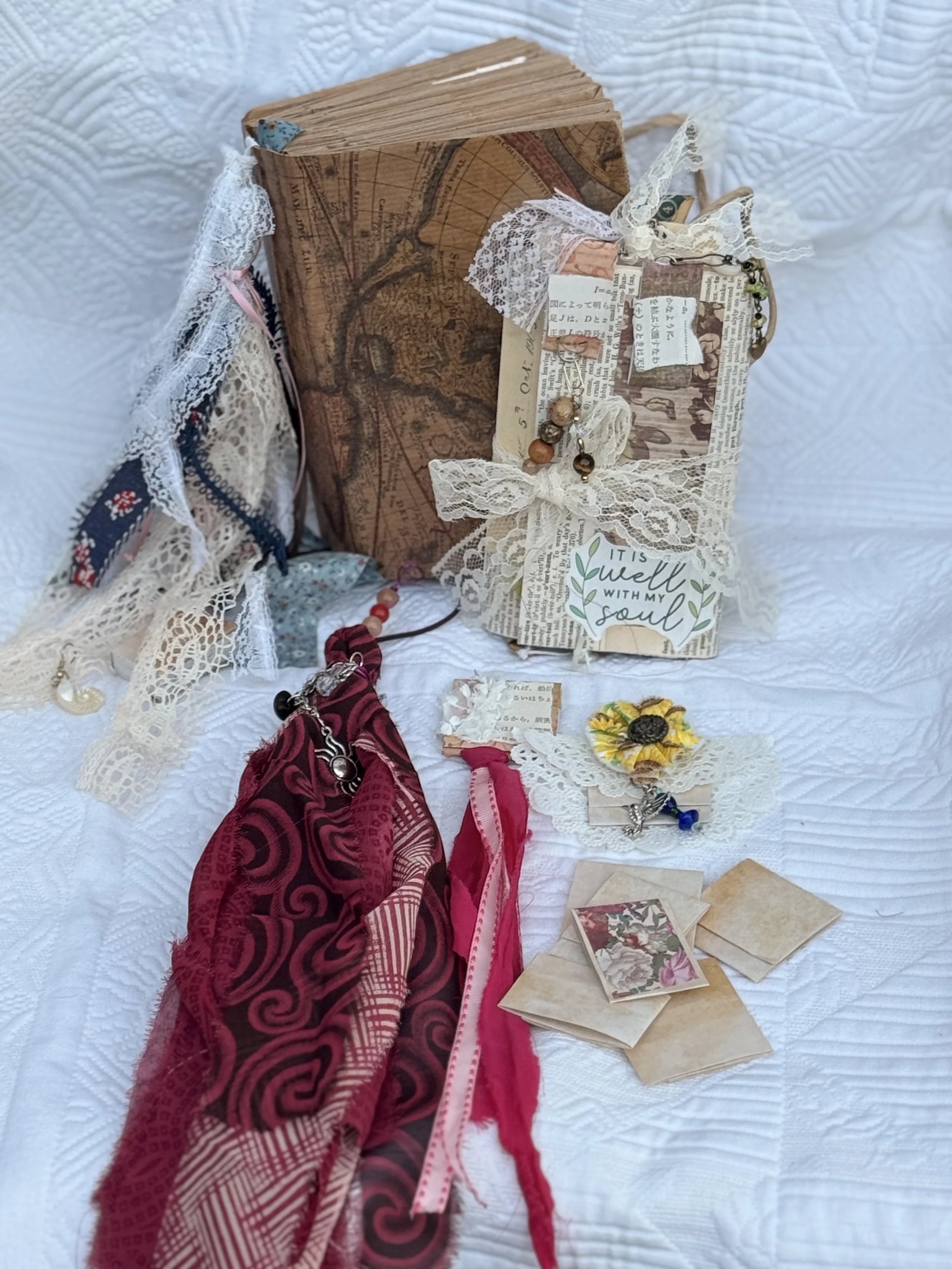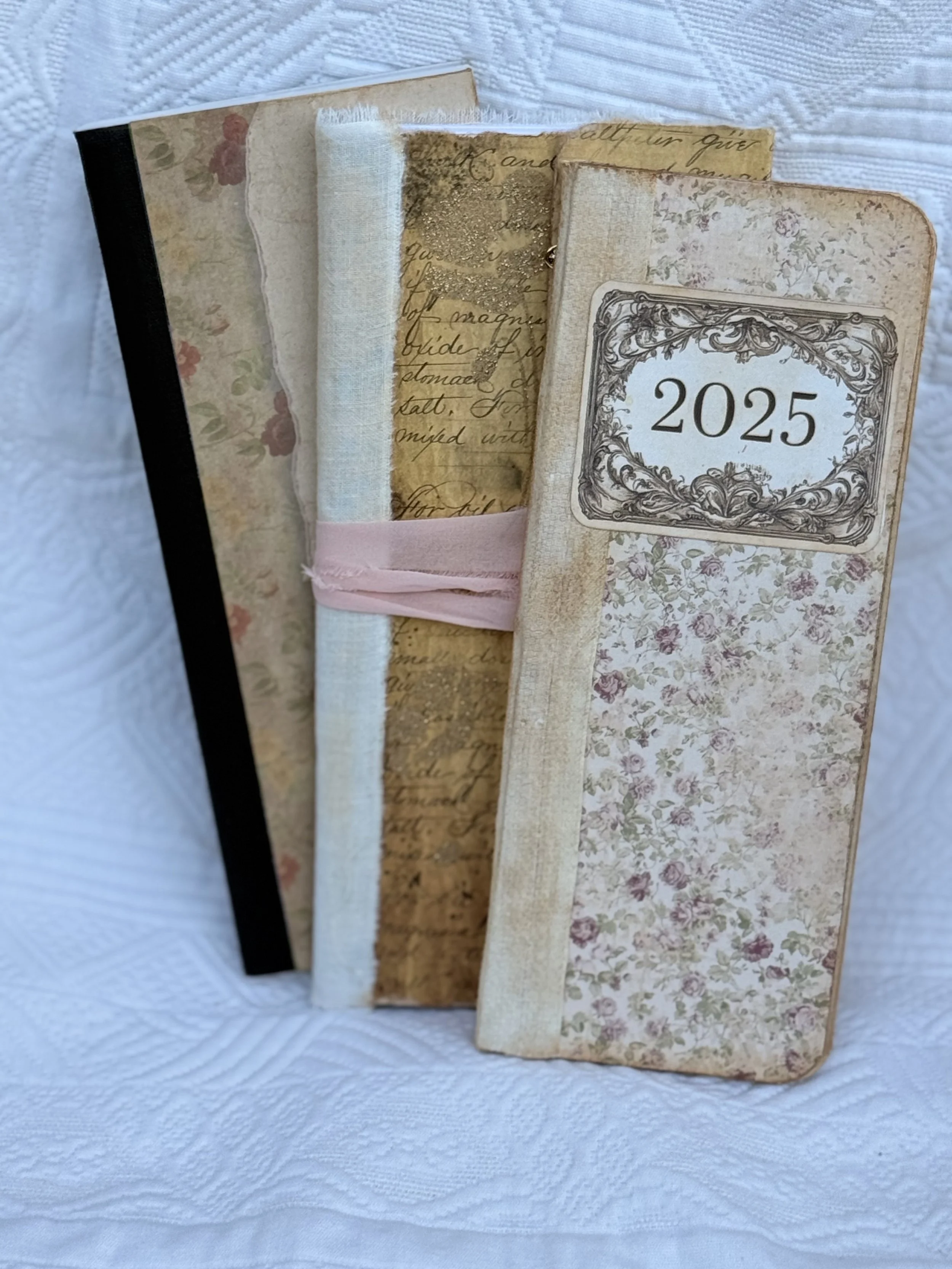 In this class we will alter a composition book, tall skinny style into a great notebook for daily use, a prayer journal, a financial record book.....the ideas are endless!