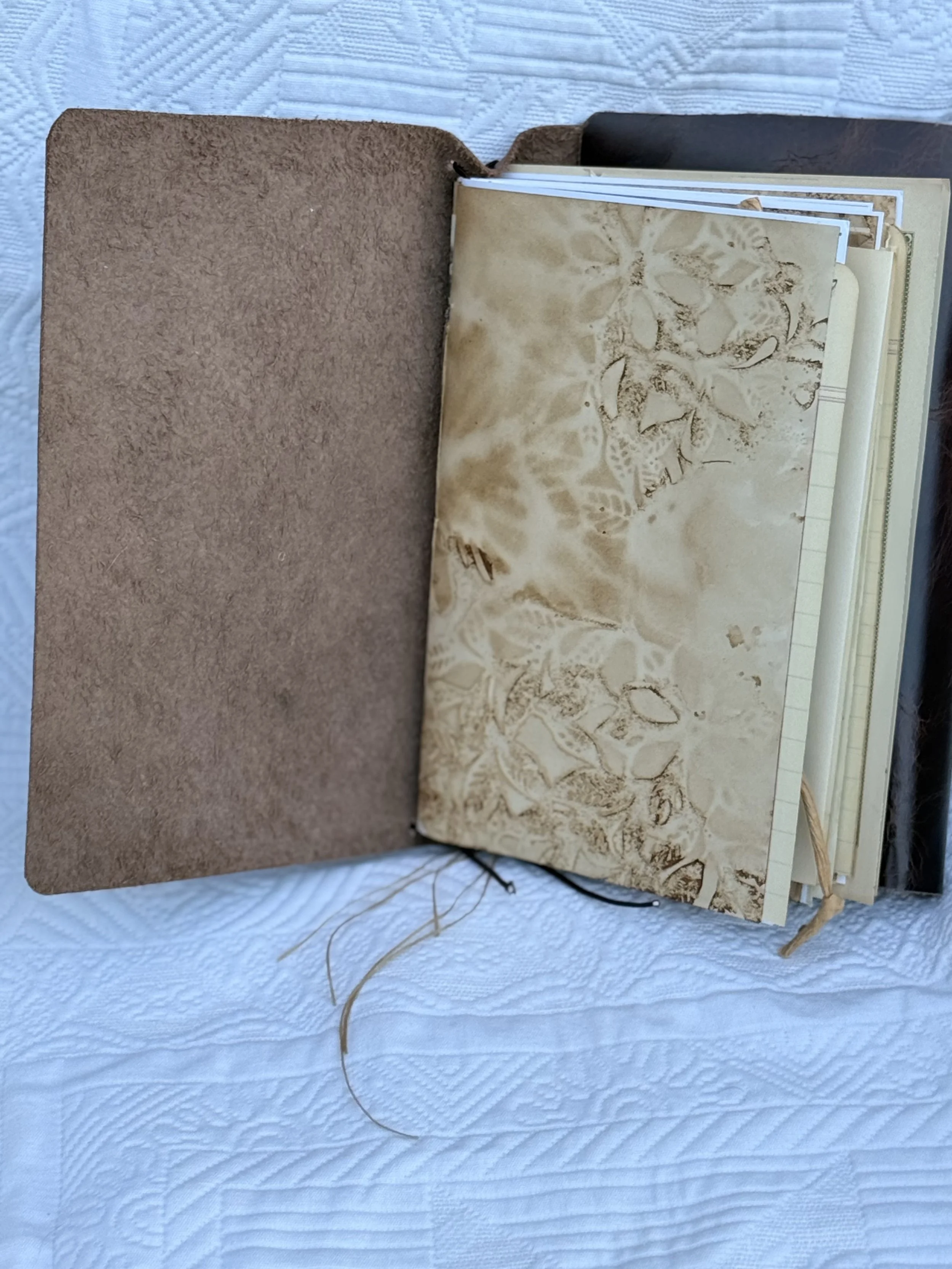 In this class you will make a travelers style journal with a genuine leather cover. This is a great journal idea for a regular use book, a traveling journal or an art journal. We will make a slipped spine with removable pages.