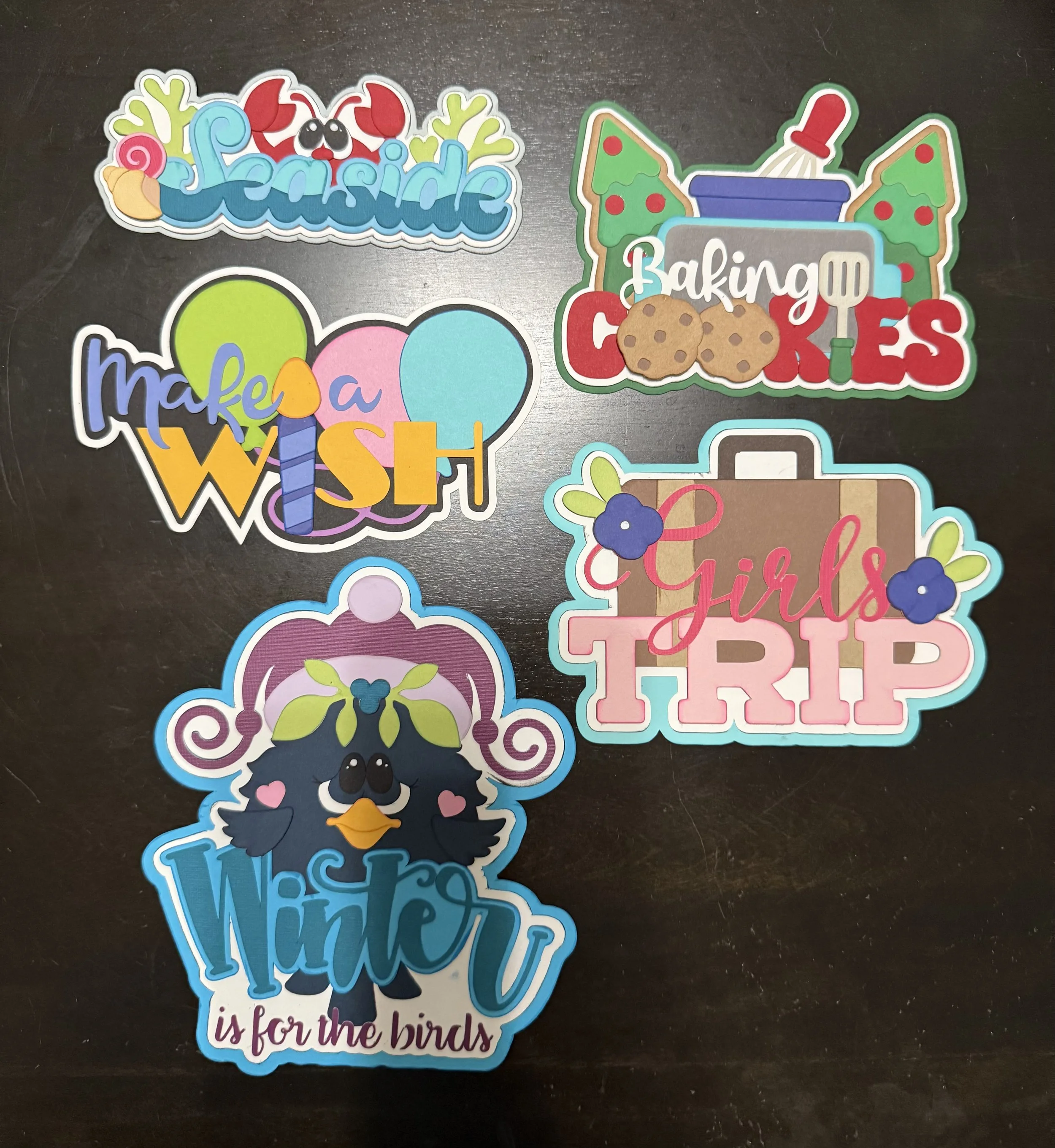 Supplies Needed: You will need to bring scissors/trimmer and scrapbook paper that coordinates with the theme of the word block you choose. Example: if you choose the Frosty word block, you'll want to bring six coordinating snow and winter scrapbook pieces of paper (one piece of scrapbook paper for each letter in your word block word).